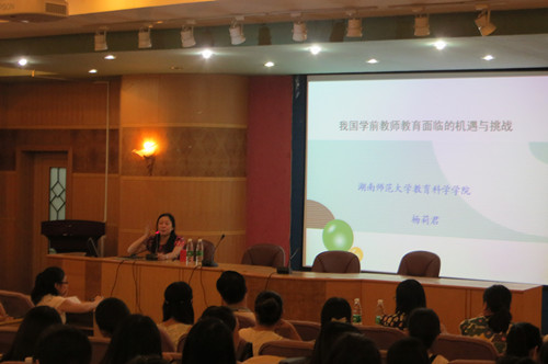 2015年6月18日上午8:30——10:30,湖南师范大学博士生导师杨莉君教授应邀前来beat365“人文科技大讲坛”,为教育科学系学前教育专业师生和校内外相关专业人士做学术讲座,主讲主题为“我国学前教师教育面临的机遇与挑战”。杨莉君教授结合我国学前教育事业发展的趋势和实际情况,系统讲解了当前及今后我国学前教育专业师资的专业任职资格及专业素养要求、当前学前教师教育存在的问题、面临的机遇与挑战。杨莉君教授的讲座高屋建瓴、联系实际、深入浅出,并详尽回答了部分师生的提问,受到与会听众的欢迎。