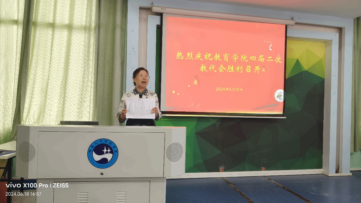 蒋冰清作院长工作报告。他回顾了过去一年学院在教学、科研与社会服务等方面取得的显著成绩,并对未来的工作目标和计划进行了详细阐述。他强调,学院将继续深化教育教学改革,提升教学质量,加强师资队伍建设,推动科研创新,以实现学院的可持续发展。