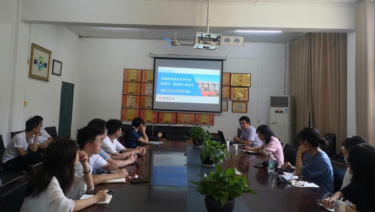 9月16日下午,衡阳师范学院来我院进行心理健康和语文教育硕士点的宣讲,宣讲在甘樹楼304会议室开展,宣讲人为教育科学学院郑志辉博士。本次宣讲由院党总支副书记田密主持,辅导员黎任水及18-19级学生代表参加。