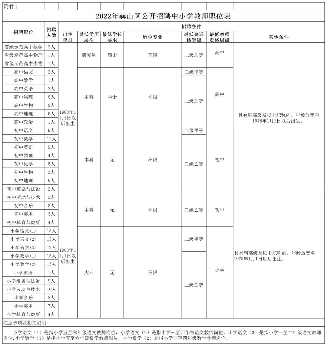 1. 2022年赫山区公开招聘中小学教师职位表