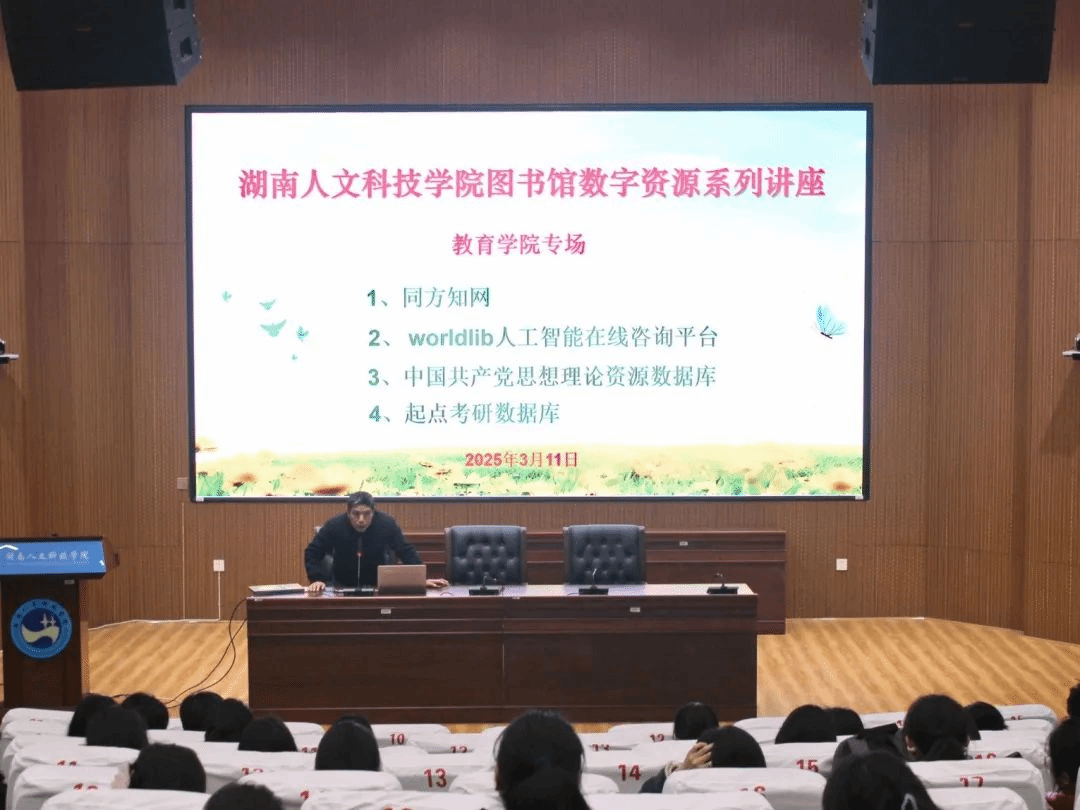 讲座上,老师们介绍了学校的多种数字资源。网站版和手机版知网能让大学生随时随地获取丰富的学术文献,满足各学科的研究需求;worldlib人工智能在线咨询平台,可实时答疑解惑,帮助大家快速解决资源使用难题;中国共产党思想理论资料数据库,能为思政学习提供丰富内容,为党建研究提供权威资料;起点考研数据库拥有系统的课程和真题,助力考研学子备考。