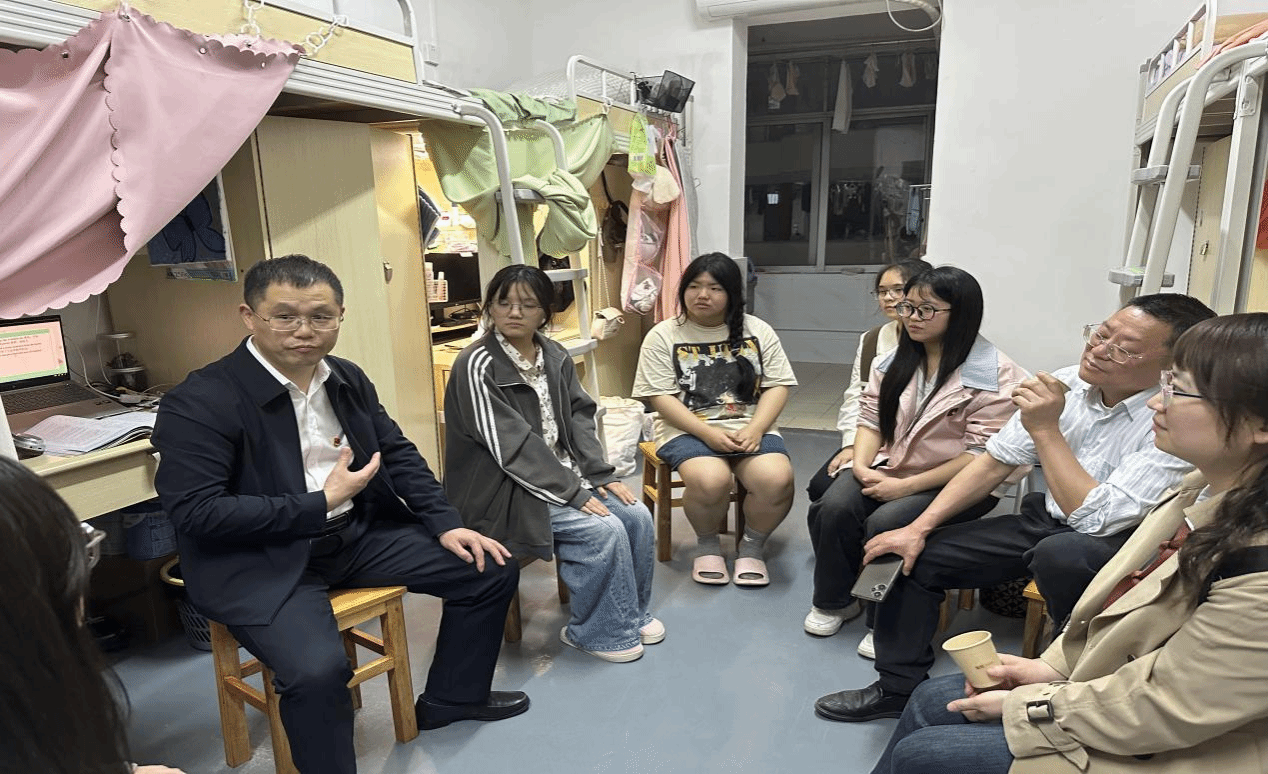 3月26日晚,为近距离了解学生的学习、生活状况,为同学们提供切实的帮助和指导,副校长陈勇,学工部部长曹宇,副部长谢四元、宋双,在教育学院党总支书记陈功平、院长蒋冰清、副院长李国强、曹俊军的陪同下,一同走进教育学院2024级学生宿舍,开展“三联系”活动。