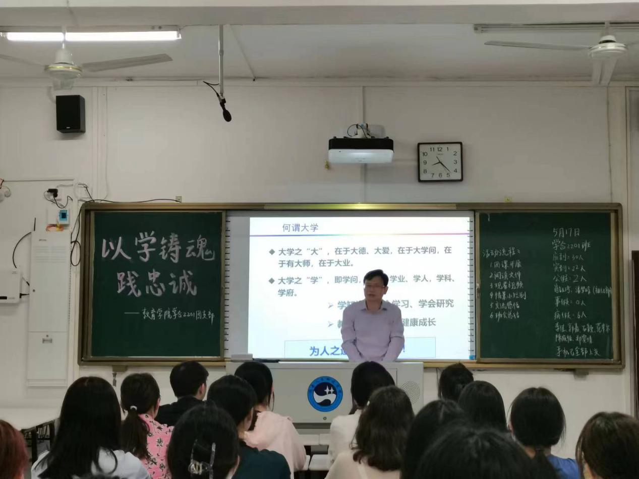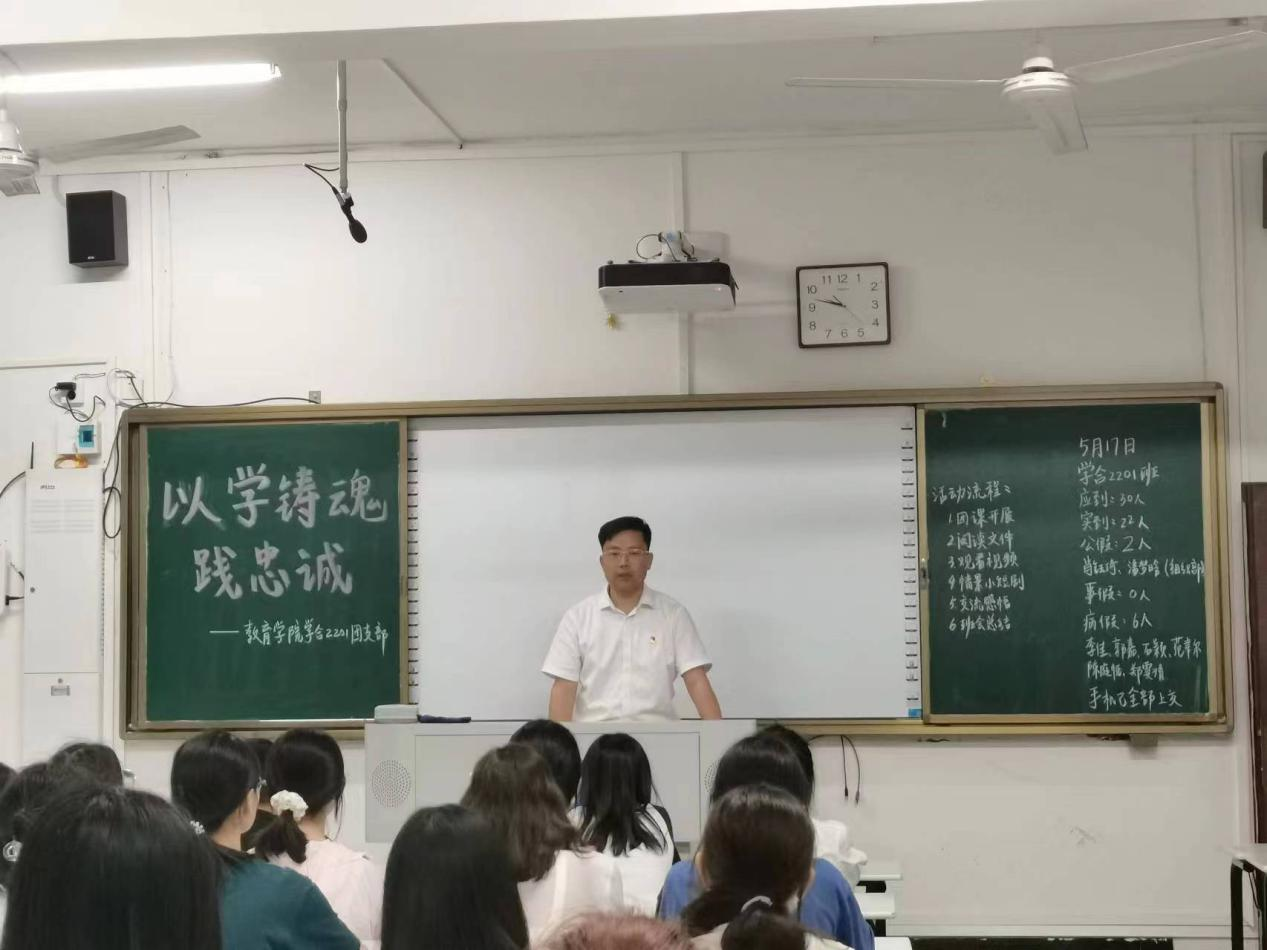 5月17日晚,学校党委委员、副校长陈志国深入教育学院2022级学生班级开展“以学铸魂践忠诚”三联系主题活动学工处副处长谢四元院党总支书记邹坤、副书记田密、副院长刘黎明,全体辅导员部分学生干部参加活动。