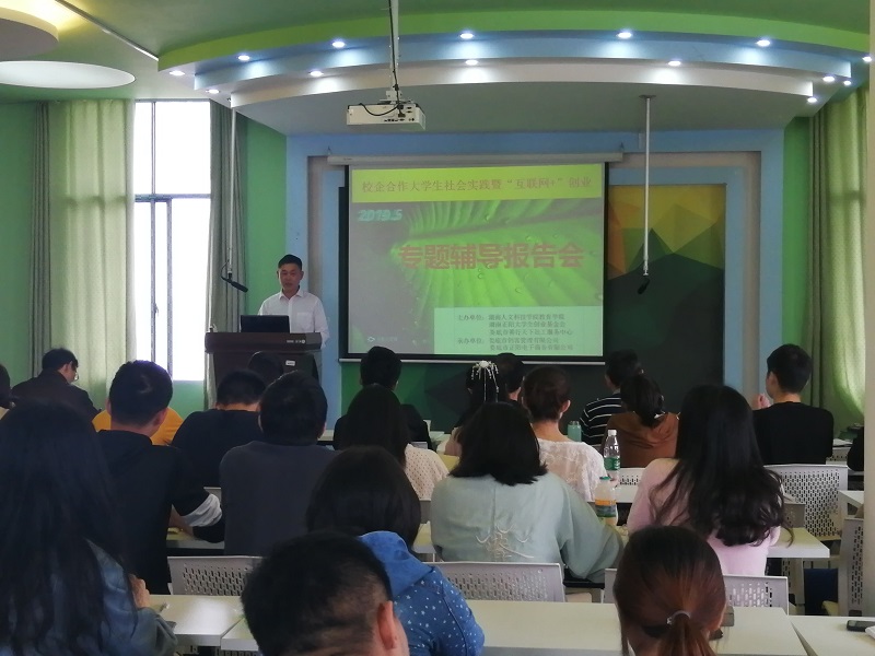 5月17日,我院联合校企合作单位,在甘澍楼共同举办了“校企合作大学生社会实践暨‘互联网+’创业专题辅导报告会”。此次报告会是应用心理学专业校企合作课程(三)的活动内容之一,得到了湖南正阳大学生创业基金会、娄底市娄星区司法局、娄底市善行天下社工服务中心、娄底创客管理有限公司、娄底正阳电子商务有限公司的支持与配合。报告会的大部分听众为我院16级应用心理学专业学生,我院党总支部副书记李霞、实验实训室刘红平等老师出席了报告会。报告会由徐建东副教授主持。