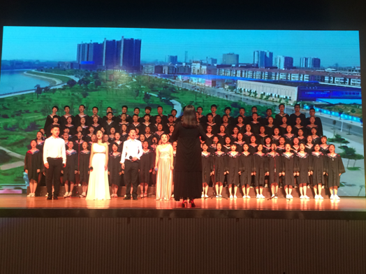 本次晚会的第一个节目就是我院选送的大合唱——校歌《梦想飞翔》。合唱节目由我院专任教师张梅组织并排练,全院一百余名学生参加。同学们唱出了对学校的深情厚意以及对未来的憧憬,展现了大学生朝气蓬勃、积极向上的精神风貌,赢得了现场领导和观众的热烈掌声。