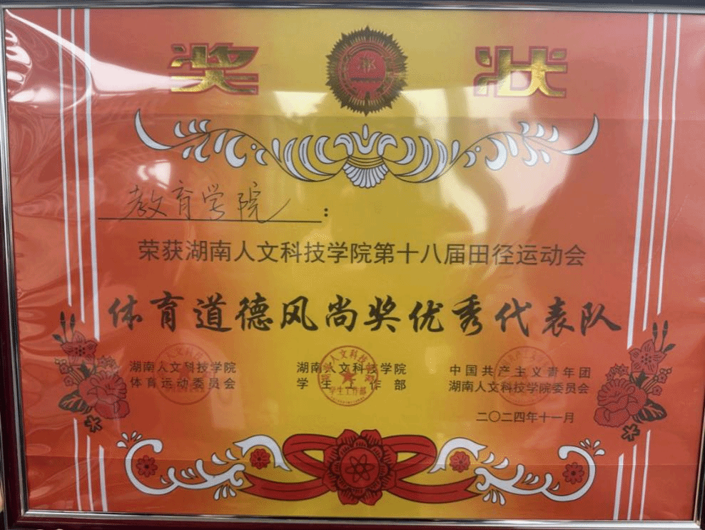 通过顽强拼搏和不懈努力,教育学院运动员汪思吾、夏洪锦、方莹、徐子淇等人荣获小垒球、跳远等多项单项荣誉。在接力、集体跳绳等团体项目中教育学院也取得了优异的成绩。最终教育学院获得甲组团体第三名和体育道德风尚奖。