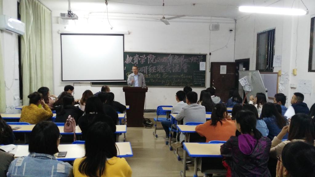 近日,教育学院各专业教研室先后召开2018年各专业学生考研经验交流会,学院领导、相关专业教研室主任和老师到场,组织各专业2014级考研成功录取的毕业生为低年级(主要是2015级学生)分享考研经验。考研录取学生汤子腾、兰勇龙、尹昱靓、谭甘露等就考研准备、学习方法、考试应对方法与技巧、考研与实习、毕业论文的关系、师生交流等方面分享了自己的心得体会并一一解答同学们的疑问。相关领导和老师就学生准确处理好考研与职业生涯规划的关系、合理定位和明确考研方向与层次等方面的问题为学生做了指导。