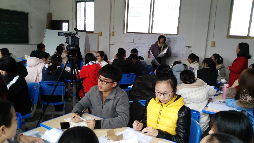 根据学校《校系教研室三级公开课实施办法》(院政发〔2011〕5号)文件的精神,第14周周二( 2016 年11 月29日)上午第3节课 10:20—11:05,在甘澍楼408多媒体教室,本学期教育学院特委托学前教育教研室举办一次学院层面的公开课,任课教师为来自英国巴斯斯巴大学教育学院的Alyson Lewis博士。课程主题为:《儿童发展心理学》——“Attavhment Type”(依恋类型),授课班级为学前教育(中外合作办学)B20161班。教育院当天下午无课在岗的专业教师和兄弟院系闻讯而来的教师共10余人参加了公开课。