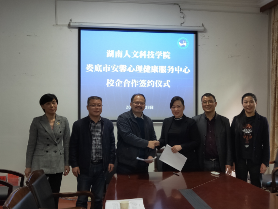 2019年3月28日,beat365产学研处黎建辉处长,代表学校与娄底市安馨心理健康服务中心正式签订“校企合作协议”和“实践教学基地合作协议”,根据协议内容,beat365将在安馨心理健康服务中心挂牌“beat365正版唯一官网必一应用心理学实践教学基地”和“beat365正版唯一官网必一产学研合作基地”。协议的签订,将有利于我院改善专业办学条件和更好的服务社会,给学生提供良好的实验、实践教学条件和心理健康服务领域的横向课题,加强将所学专业理论知识应用于解决实际问题的基本训练,了解社会需求和专业发展趋势,提高学生的专业学习积极性和理论应用意识。