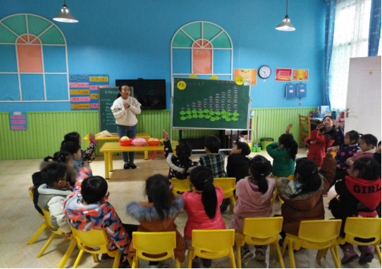 然后,学生张小慧等几位上了三堂实践数学教育活动课,并现场说课,幼儿园园长、老师就教育活动与环创进行现场指导。同学们认真的准备、较为扎实的知识功底得到了幼儿园的好评,但是对幼儿的研究及活动组织能力等还需进一步锤炼。