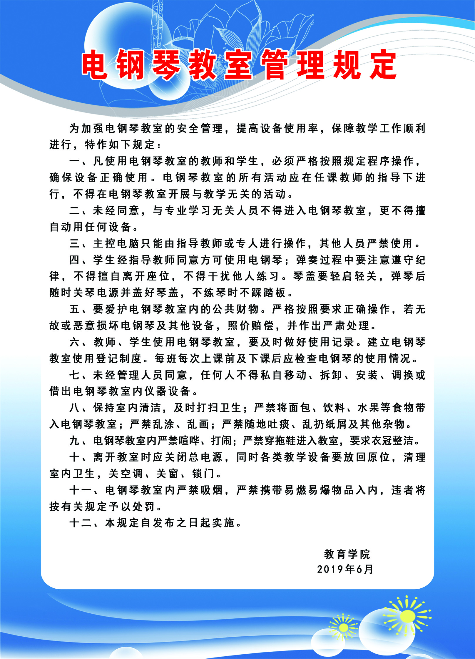 电钢琴教室管理规定