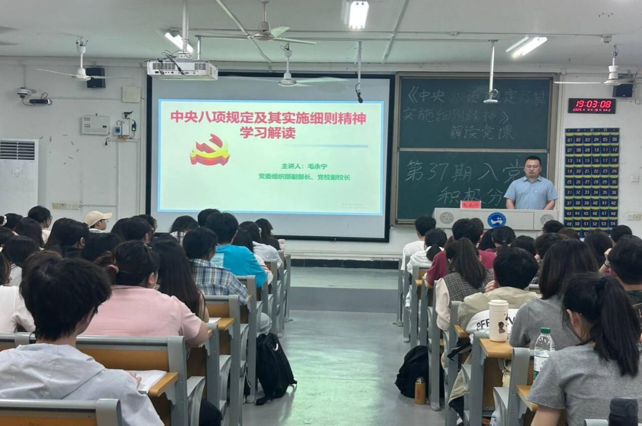 第四堂课,校党委组织部副部长毛永宁从《中央八项规定及其实施细则精神》入手,进一步强化了学员们的纪律意识和廉洁意识。