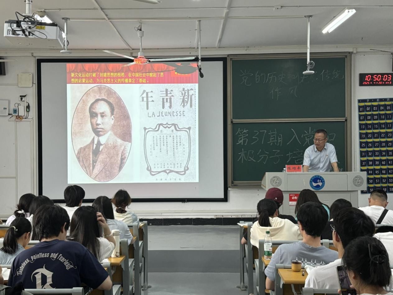 第八堂课,教育学院党总支书记陈功平围绕《党的历史和优良传统、作风》,梳理了党的百年奋斗历程,激励学员们弘扬优良传统,改进工作作风,为党的事业贡献力量。