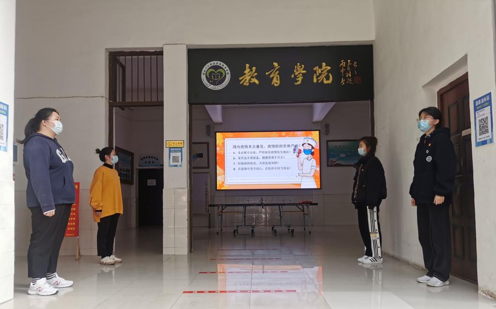在教育学院党总支书记邹坤、党总支副书记田密的带领下,学生党员在甘澍楼疫情防控点值守,做好对来往的师生进行场所码的查验,以及是否佩戴校徽和口罩,同时进行体温检测并做好登记,发现异常情况及时处理并上报,耐心细致做好师生进出服务的工作,引导大家增强疫情防控意识,认真做好自身防护。
