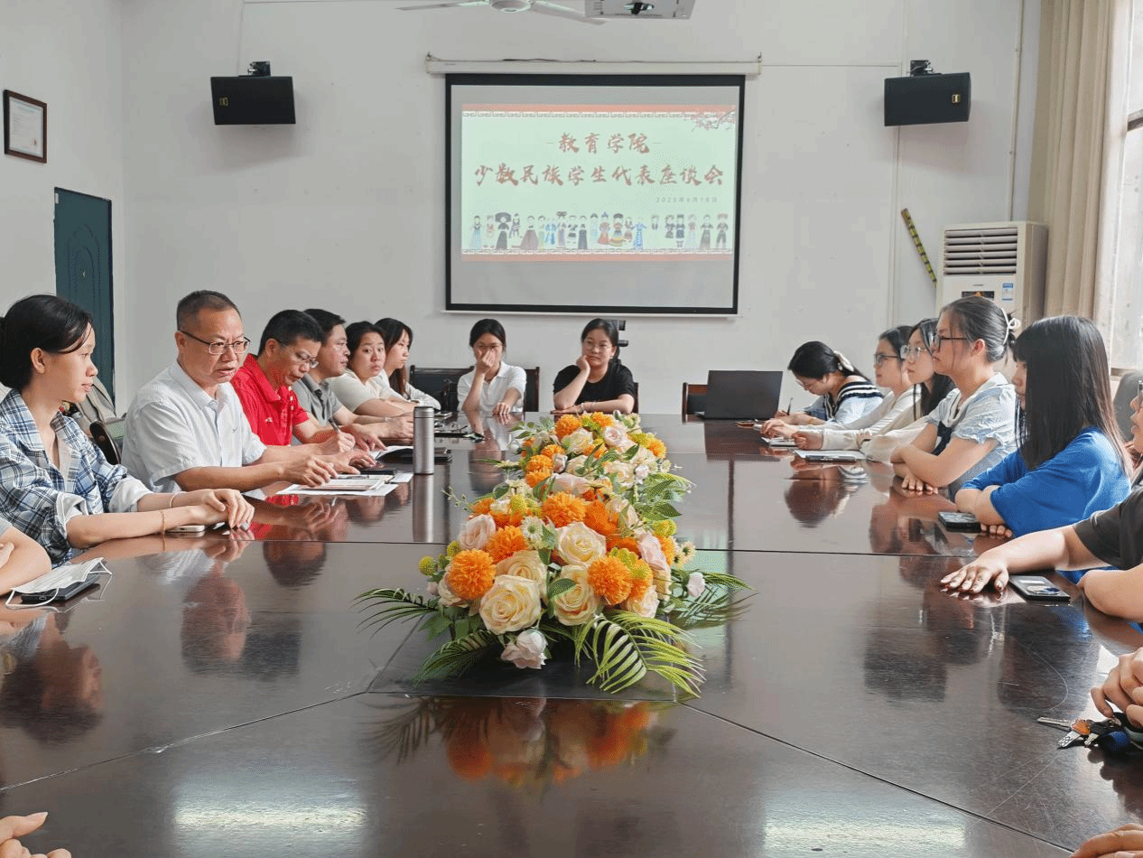 6月18日,教育学院在甘澍楼304召开了少数民族学生代表座谈会,旨在进一步了解少数民族学生的思想动态和学习生活情况,铸牢中华民族共同体意识,促进民族团结和校园和谐。会议由教育学院陈功平书记主持,曹俊军副院长、李国强副院长、学工办主任、各级辅导员、各民族学生代表参加了会议。