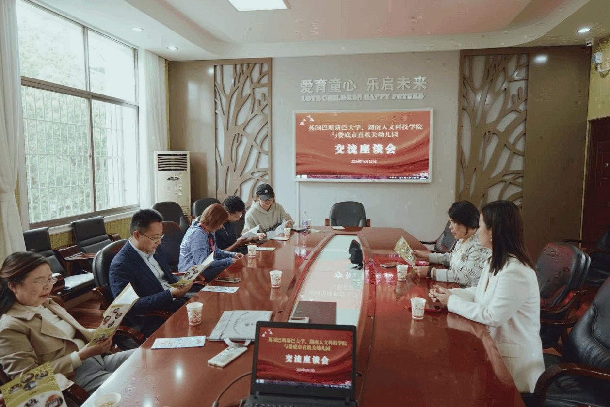 4月12日,教育学院副院长刘黎明、学前教育教研室主任赵艳红、教师代表文思婕,国际合作与交流中心肖湘辰,巴斯斯巴大学教师Shaddai、Karen一同前往学院实习实训基地娄底市机关幼儿园、恩雅幼儿园和凤鸣谷自然学校等地参观交流。