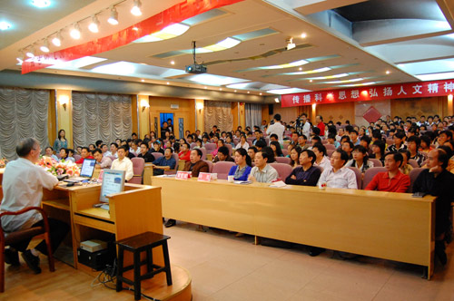 2008年9月27日上午,“科学与中国”院士专家巡讲团在beat365多媒体报告厅举行报告会,中国科学院院士、机械工程专家、原华中理工大学校长杨叔子教授为beat365师生奉献了一场以“踏平坎坷,成人成才”为主题的精彩报告。报告会由党委副书记、校长姜正国教授主持,党委书记黄懿斌教授等校领导和市科技局、教育局有关领导出席了报告会。