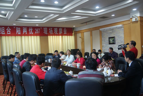 “陆两优267”是由农科所育成的我市第一个通过湖南省农作物品种审定(湘审稻2008044)的两系杂交晚稻新组合。已于2009年3月与亚华种业有限公司签订合作开发协议。该品种去年在大科办事处早元村示范推广220亩,平均亩产达552公斤,今年在娄底市各县、市及娄星区示范推广500亩。“陆两优267”表现出抗性好、秧龄弹性大、结实率高、粒子大、丰产性好、米质优等特性,深受种植农户的喜爱。与会人员参观了娄星区石井乡江溪村示范基地,认为该品种适宜在湖南省稻瘟病轻发区作双季晚稻栽培。会上,市科技局、市农开办表示积极支持该品种在娄底市及湖南省的立项推广工作。亚华种业公司湖南片大区经理则表示亚华将在2011年在湖南大面积推广该品种。