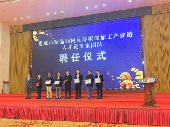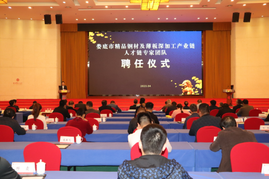 4月27日,娄底市委人才工作领导小组、娄底市工业和信息化局举行精品钢材及薄板深加工产业链人才链专家团队聘任仪式,聘请毛新平院士、雍岐龙教授等7位专家为精品钢材及薄板深加工产业链人才链专家团队成员。娄底市人民政府副秘书长徐长青主持仪式。beat365党委委员、副校长朱强教授应邀出席。