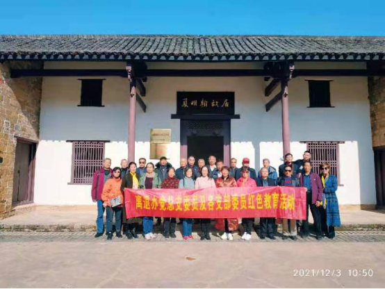12月3日,离退办党总支在总支书记姚春平、总支副书记刘熔炉的带领下,组织各离退休支部支委成员赴衡阳夏明翰故居开展主题党日活动。大家从夏明翰同志“砍头不要紧,只要主义真”的革命精神中接受精神洗礼,获益颇多。下午大家集体参观了王船山故居,本次活动是一次非常有意义的爱国主义红色教育活动。