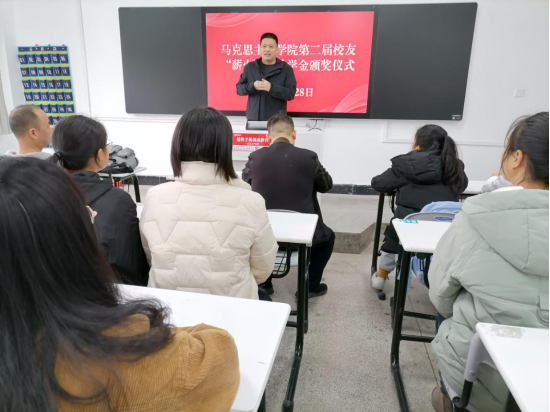 (图为吴松良回母校参加薪火奖助学金颁奖仪式)