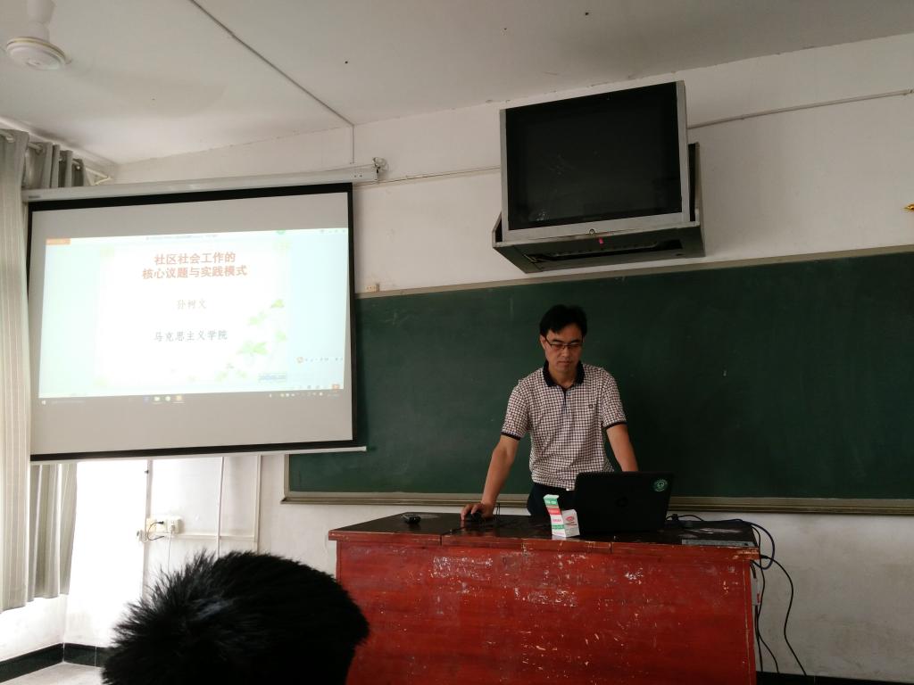2017年5月25日,为了贯彻落实全国科技活动周和学校关于开展科技活动周的精神,我院孙树文博士在致远楼610教室为2016级思想政治教育专业学生做“社区社会工作的核心议题与实践模式”的讲座。孙博士以通俗易懂的语言、深入浅出的讲授方法,详细讲解了“社区社会工作的核心议题与实践模式”的重要意义、现实需求以及实践模式特征等相关知识,深入分析了学生掌握社会工作议题、拓展社会工作实践模式的途径和手段。讲座结束后,孙博士与学生开展了互动交流,就学生关心的相关问题进行了细致的回答。通过2小时的讲座,孙博士使学生进一步深化了对社区社会工作的认识,提高了社区思想教育的水平。(肖国伟)