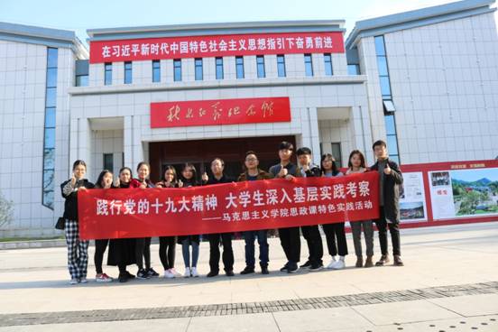 11月27—29日,我院开展了思政课特色实践活动“践行党的十九大精神,大学生深入基层实践考察”活动。我院师生和其他院学生代表一行15人在党总支书记游训龙教授、副院长杨国辉博士以及辅导员张得才老师的带领下,先后前往浏阳文家市镇、开慧镇、湘潭等地进行了考察学习。