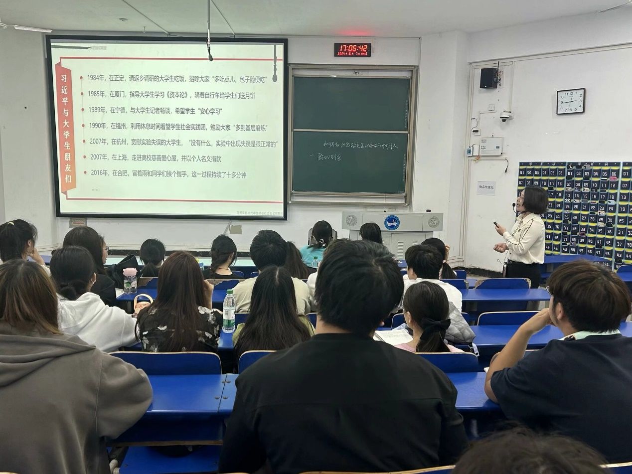 课上,郑凤娇以中华民族从衰弱走向复兴的艰难历程为引,指出新时代青年肩负着的民族复兴大任的历史使命。并详细分析了当前国际国内的形势,阐述了时代新人的基本要求和具体内涵。最后,郑凤娇与各听课人员共勉,提出要以高度责任感和强烈使命感进一步强化初心使命意识,大力发扬革命先辈“苟利社稷,不顾其身”的历史担当精神,立大志、明大德、成大才、担大任,努力成为堪当民族复兴重任的时代新人。课后各专家及老师就本课堂的优点与不足与郑凤娇进行了深入的探讨和交流,为今后的教学工作提供了宝贵经验。