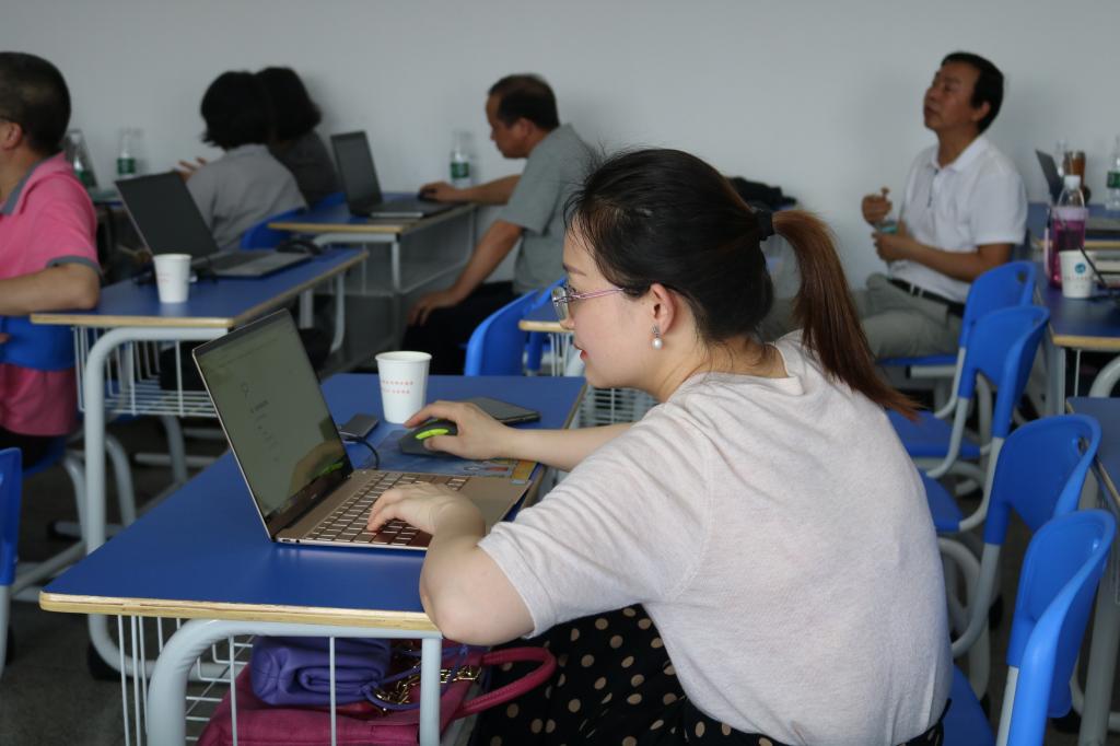 2021年6月8日下午3:00,培训第一课在致远楼603教室进行。本次培训邀请人民网技术负责人李文英主讲,副院长杨国辉主持。本次培训的主题是《网络教学平台的管理与应用》。本次教学,李文英结合优学院等国内教学平台,针对课前准备、创建课堂、点名签到、讨论题设置、作业布置、考试测评等多方面的操作进行了细致全面的讲解,在此过程中,老师们认真听培训师的讲解,在自己的电脑上进行操作实践。接着老师们积极讨论,相互帮助,提出在使用中遇到的问题并提出教学平台可优化方面的意见与期望,培训师针对老师们的困惑进行了解答,接受了老师们的意见,表示会积极改善该平台的教学功能,并重点提到该平台现已有可发现刷课刷题现象的功能,除此之外其还可以保留教学数据,对老师参加教师技能竞赛有重大的辅助性作用。