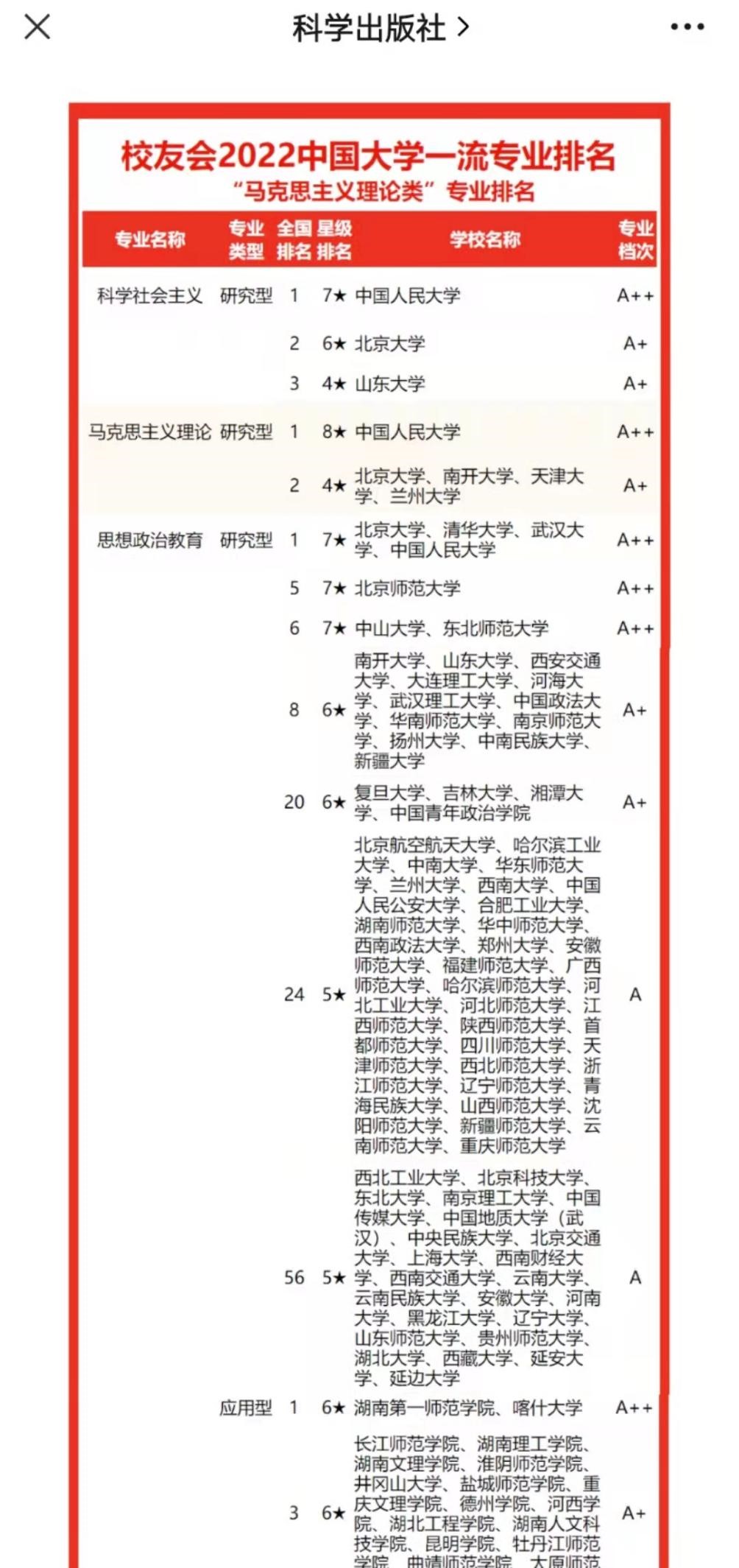 我院思想政治教育专业上榜2022中国大学一流专业榜单
