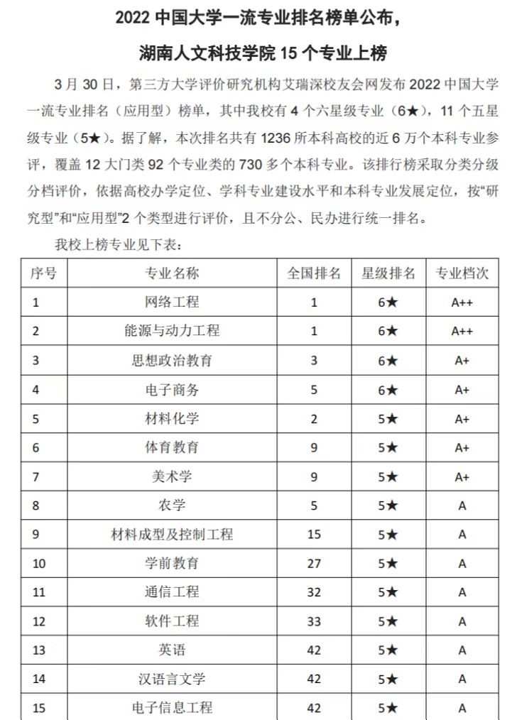 3月30日,艾瑞深校友会网发布2022年中国大学一流专业排名(应用型)榜单,我院思想政治教育专业被评为最高级别的6星级专业,专业档次A+,排名全国并列第三。本次排名评价指标由学科水平、培养质量、师资水平、专业水平和专业影响等5大指标构成,并分为“研究型”和“应用型”2种类型进行评价。