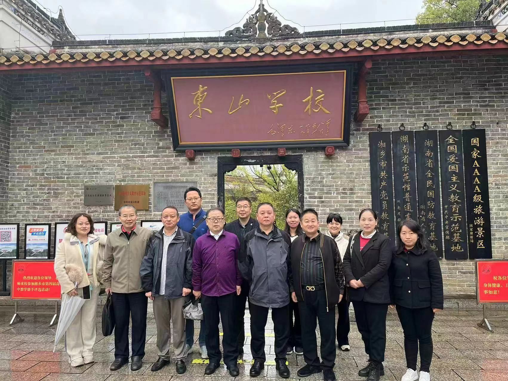 2023年11月11日和12日,马克思主义学院中国化马克思主义教研室、马克思主义基本原理教研室组织教师参观了湘乡东山书院和宁乡何叔衡同志故居,并开展了“两个结合”教研活动。马克思主义学院院长张卫明教授、副院长杨国辉教授参加了这次教研活动并进行指导。