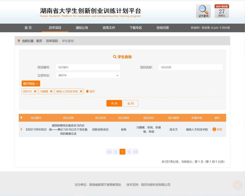 据悉,在2021年度大学生创新创业训练计划项目申报中,由我院周玉文博士指导、19级思政一班冯媛媛同学申报的大学生创新训练项目《建国初期党史教育及当代价值——兼论习总书记关于党史教育的重要论述》也获得省级立项。此次立项成果不仅展现了我院学子的创新创业素养,培养了学生创新创业精神,营造了良好的创新创业氛围,更是对我院多年来加强学风、科研建设的肯定,展示了我院的人才培养成效和建设成果。