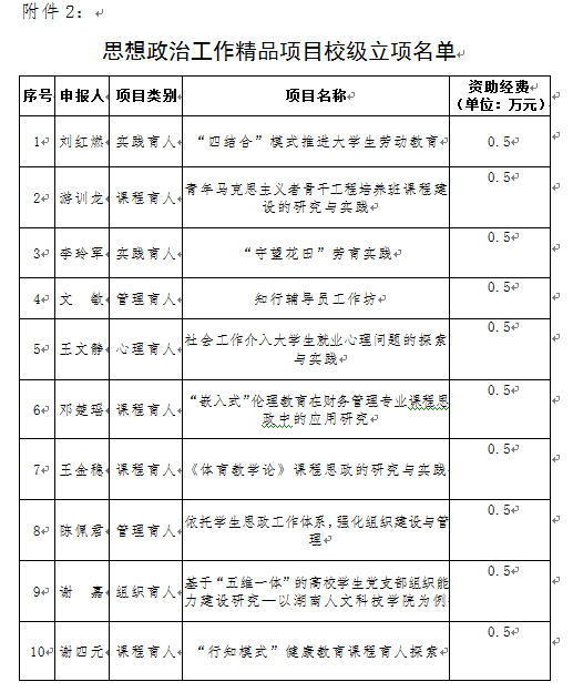 2.思想政治工作精品项目校级立项名单