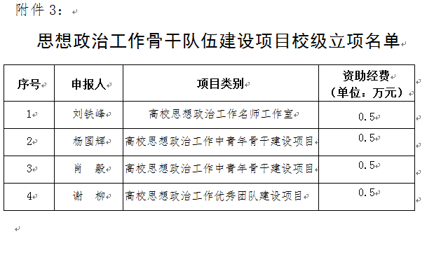 3.思想政治工作骨干队伍建设项目校级立项名单