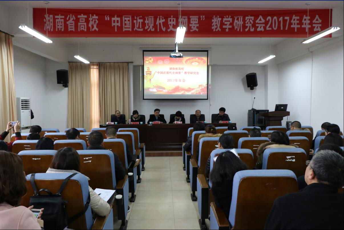 在全国上下热学热议党的十九大精神,学习宣传贯彻习近平新时代中国特色社会主义思想,坚定文化自信,推动社会主义文化繁荣兴盛的重要时期,湖南省高校“中国近现代史纲要”教学研究会2017年年会于12月16日在湖南工业大学召开。省委教育工委宣传部副部长李林芳、省高校“思政课”教学研究会秘书长冷舜安出席年会。全省本科高校60余名专家学者与会。我院副院长、该研究会副会长杨国辉副教授和谢科峰博士应邀参会。