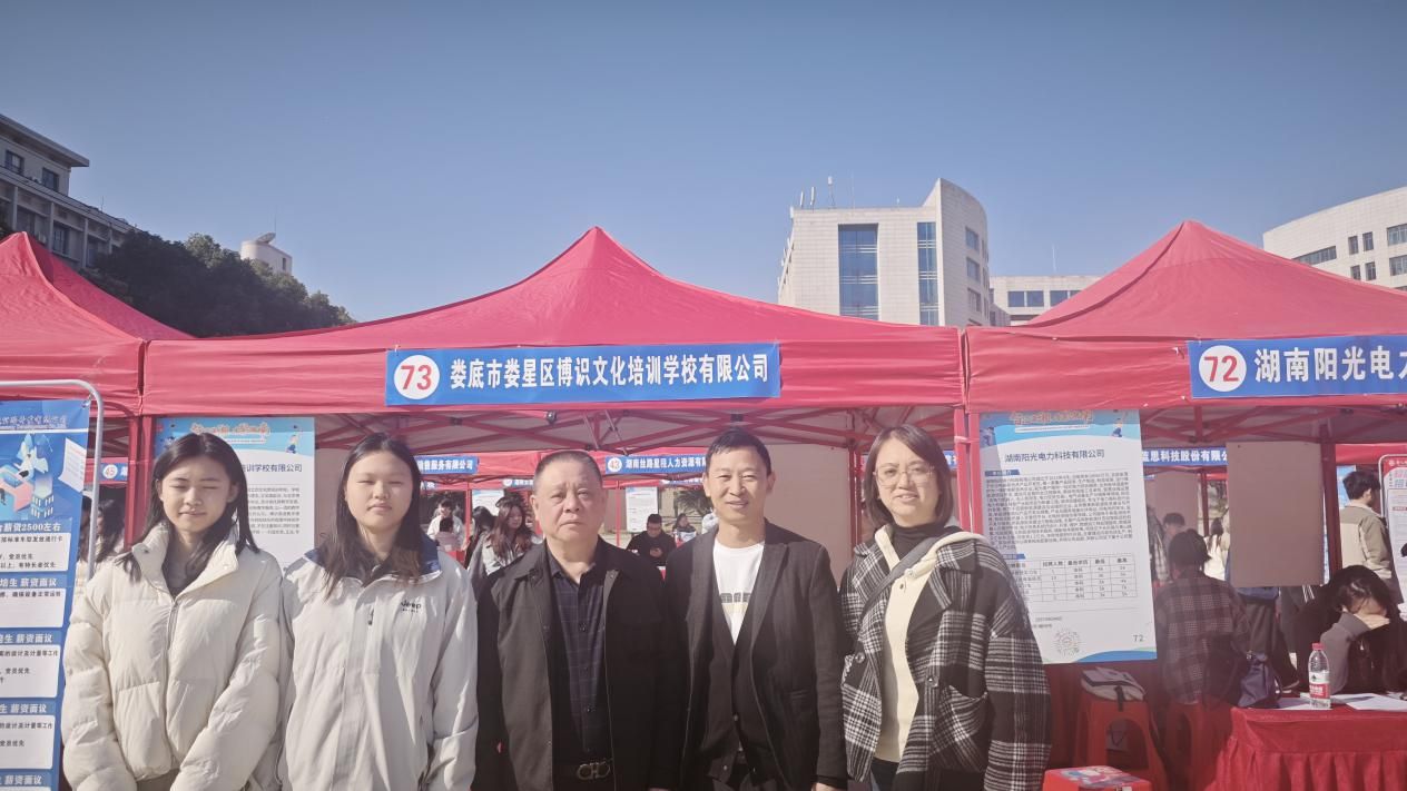 11月28日上午,娄底市娄星区博识文化培训学校有限公司受邀到海源广场为马克思主义学院2026届毕业生举行专场招聘会。马克思主义学院党总支书记张卫明,党总支副书记阳青,博识文化培训学校有限公司招聘团队及部分2022级学生参加活动。