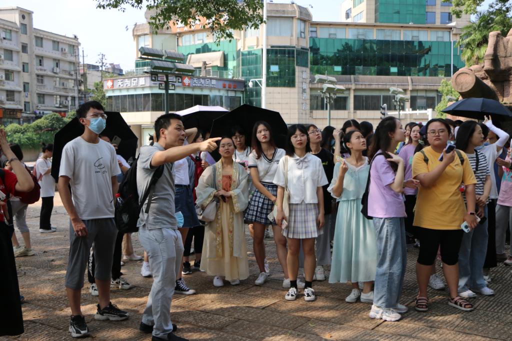 本次实践活动的第一站是天心阁,谢科峰老师站在巍峨的城墙下生动地讲解了与之有关的历史,让同学们身临其境地感受到历史当中的人民奋勇反抗侵略的英勇事迹下体现的拳拳爱国心。第二站来到了简牍博物馆,师生们在讲解员的解说中一步步深入各个朝代的简牍,了解其背后的历史故事与优秀的中国传统文化。活动的第三站是长沙规划展示馆,长沙翻天覆地的变化都被囊括其中,并向同学们展示了长沙充满科技感的未来蓝图,师生们对场馆中的高科技设施叹为观止,切身感受到了我国现代科技的飞速发展和生机活力。在活动过程中,两位老师以幽默风趣的叙述方式为同学们答疑解惑,在浏览过程中耐心的讲解,同学们在感悟历史发展中开阔视野,收获知识,受益匪浅。