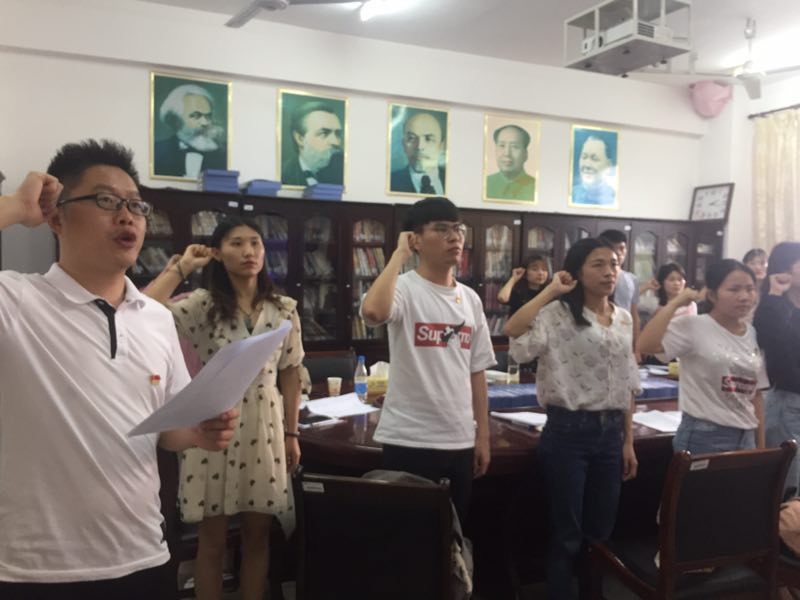 本次大会应到有表决权的正式党员5名,实到5名,大会采取无记名投票的方式进行表决,大会以5票赞成的结果同意接收邓婷坡、覃梓源、喻丽果、于露莹同志加入中国共产党。
