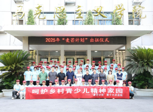 志愿者代表廖航铿锵有力表达了全体队员的决心:将扎根基层沃土,在躬身实践中锤炼过硬本领;勇立时代潮头,在攻坚克难中彰显青春本色;心系乡村教育,以实际行动诠释“麦芒计划”的精神内核。最后,马克思主义学院院长于意郑重宣布2025年“麦芒计划——关爱乡村青少年精神家园”项目正式启动。