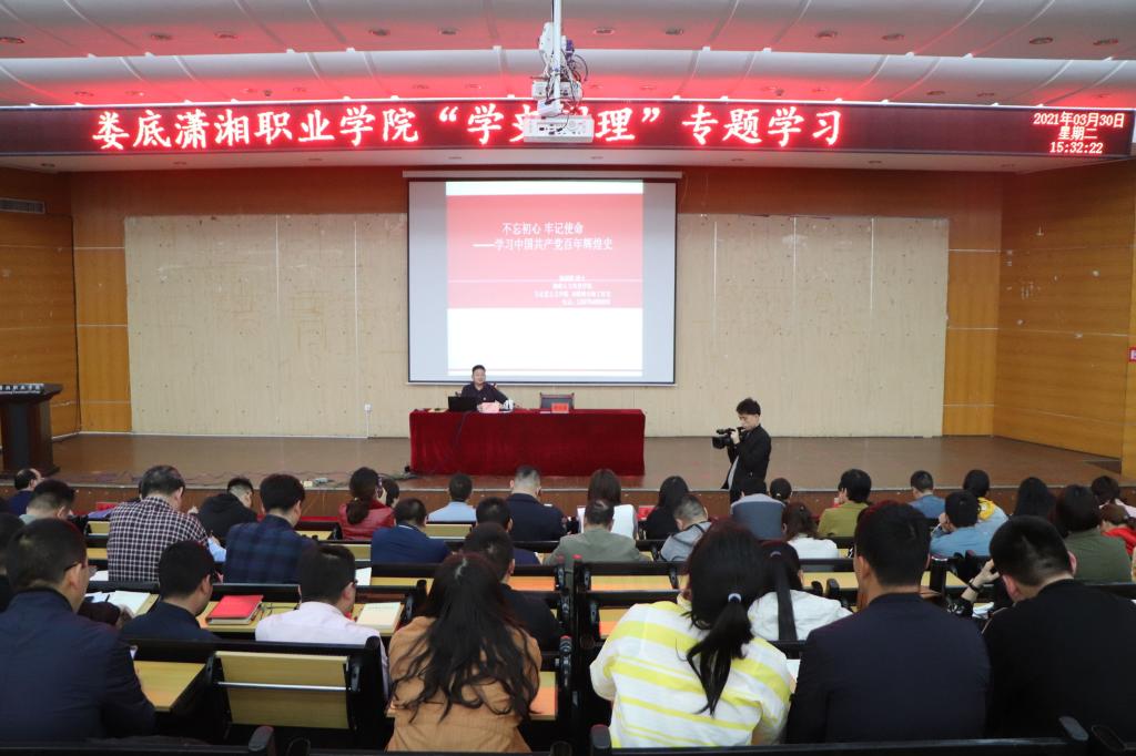3月30号下午,副院长、“刘铁峰名师工作室”核心成员杨国辉应邀在潇湘职业技术学院多功能报告厅为潇湘职院全体党员干部开展题为“不忘初心,牢记使命”的党史主题讲座,讲座由潇湘职业技术学院校长李尚益主持。