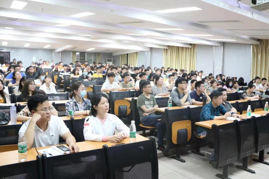 讲座正式开始,谢科峰博士以习近平系列重要讲话精神为指导,结合五四运动发展经过及其精神,号召当代青年应当有所作为和担当,引起广大师生共鸣。同时,谢博士寄语广大师生,他希望当代青年能够把握历史转型的关键时期,顺势而为,勇挑重任,培养社会责任感与历史使命感。讲座最后,全体师生党员、学生干部与谢博士合影留念。