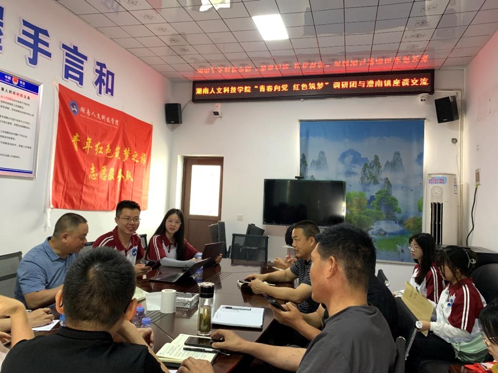 为响应中共中央办公厅“大兴调查研究之风”的号召,畅通基层调研工作渠道、为“三下乡”活动提质增效。近日,我院“青春向党 红色筑梦”调研团与常德市澧南镇开展了主题为“农民数字素养培育”的调研座谈会。