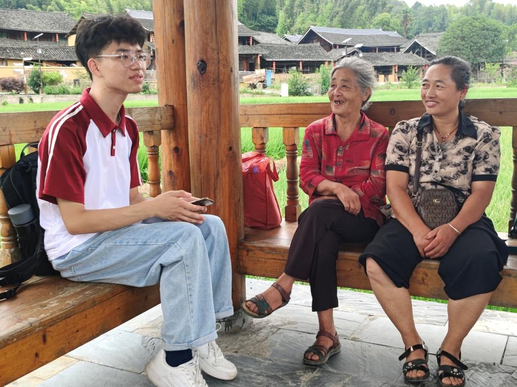 在入户访谈过程中,调研团来到大团村村支书黄进文家中与其就“五治融合”基层治理模式的运作状况、侗族文化传承、乡村建设发展等方面进行了深入交流。黄进文表示,任职近30年来,将大团村建设成为政治引领、法治保障、德治教化、自治强基、智治支撑的现代化新农村一直都是他所追求的目标。他强调,要想当好群众满意的村支书,就必须要始终坚持做好群众的“知心人”,真正做到把百姓的声音“听”在耳里、“记”在心里、“行”在足迹里。