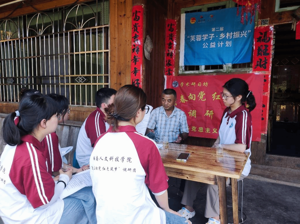 调研过程中,邵阳市绥宁县乐安铺乡党政领导班子一行来到大团村慰问调研团师生,并送来农家的蔬菜、水果等物资。乡党委书记唐钧表示,基层调研助力大学生成长成才,希望调研团能充分发挥大学生“智库”的作用,为大团村的发展建言献策。