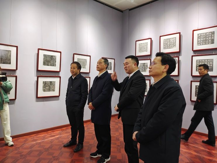 刘铁铭、盛明科等校领导一起参观了新开馆的书法博物馆。细致观摩了汉砖、汉瓦铭文、墓志拓片、名人墨迹、碑刻实物等藏品,详细询问了博物馆规划使用情况,对博物馆的建设成果给予了高度评价,并表示今后将持续支持博物馆的建设。