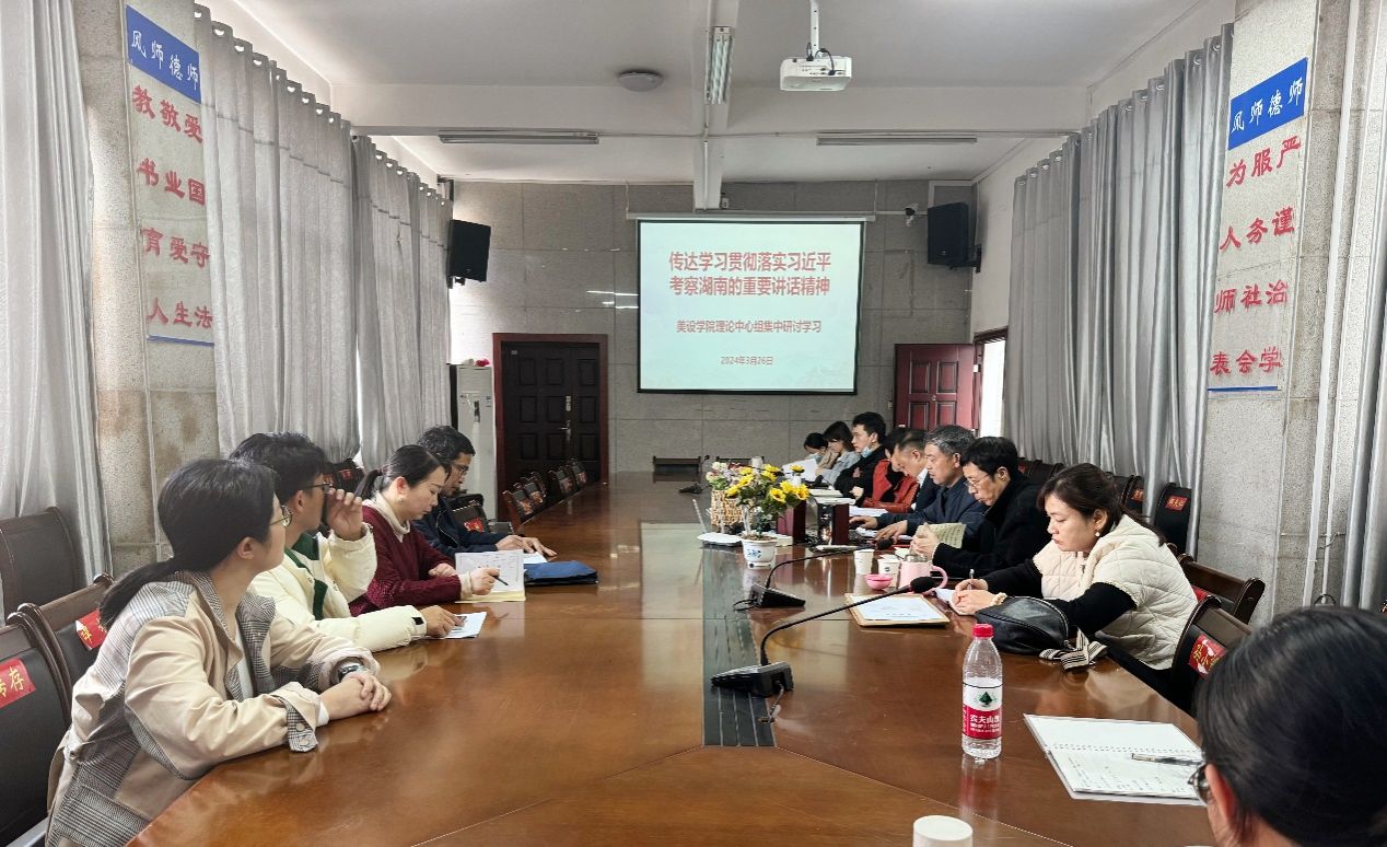 3月26日下午,美术与设计学院在逸美楼216会议室召开了中心组(扩大)集中研讨学习,传达学习习近平总书记考察湖南及主持召开新时代推动中部地区崛起座谈会时的重要讲话精神。会议由党总支书记谢光绎主持,学院全体领导班子、党总支委员、党支部书记、团总支书记、工会主席、教研室主任参加了会议。