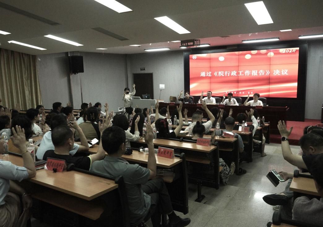 大会在庄严的中华人民共和国国歌声中开幕。会上,院长陆序彦作了题为“凝心聚力谋发展 真抓实干谱新篇 全面推进美术与设计学院工作高质量发展”的工作报告,全面总结了学院2023年在党建工作、教学科研、人才培养、师资队伍建设等方面取得的成绩,客观指出了存在的问题和不足,同时明确了2024年学院发展的思路和重点任务。