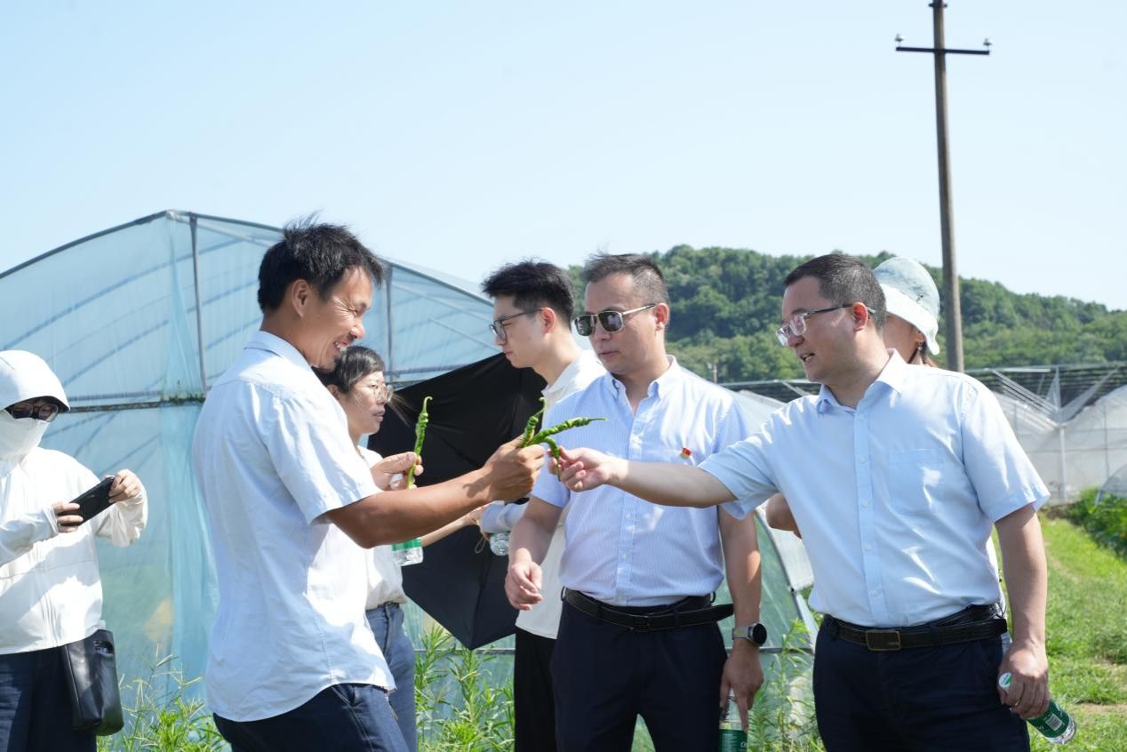 在贤才果蔬专业合作社“究究辣椒”核心种植基地,支部党员们在基地负责人曾贤才的带领下深入田间地头,详细了解辣椒从种植管理到产业延伸的全过程。据介绍,该基地采用水肥滴灌、绿色防控、生态有机肥等科学手段,实现高品质辣椒的标准化生产,亩产达3500斤,并荣获中国中部农博会金奖。在互动交流中,教师党员与技术团队就“辣椒产业链延伸”展开热烈讨论,围绕智能育苗、文旅融合、“全椒宴”开发与文创设计等方面初步达成多项合作构想,展现出艺术设计赋能农业发展的无限潜力。