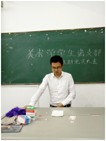我支部于2016年5月15日晚7:00-8:30,召开“美术与设计学院党总支美术学学生党支部——关于新党员接收表决会议”。此次会议参加的领导老师有美术学学生党支部书记陈天佑老师、美术学学生党支部副书记张林子学姐;本支部共有党员7人,实到7人;其中正式党员3人,实到3人,本次会议有效。